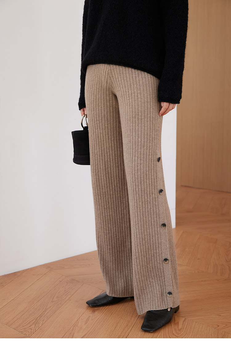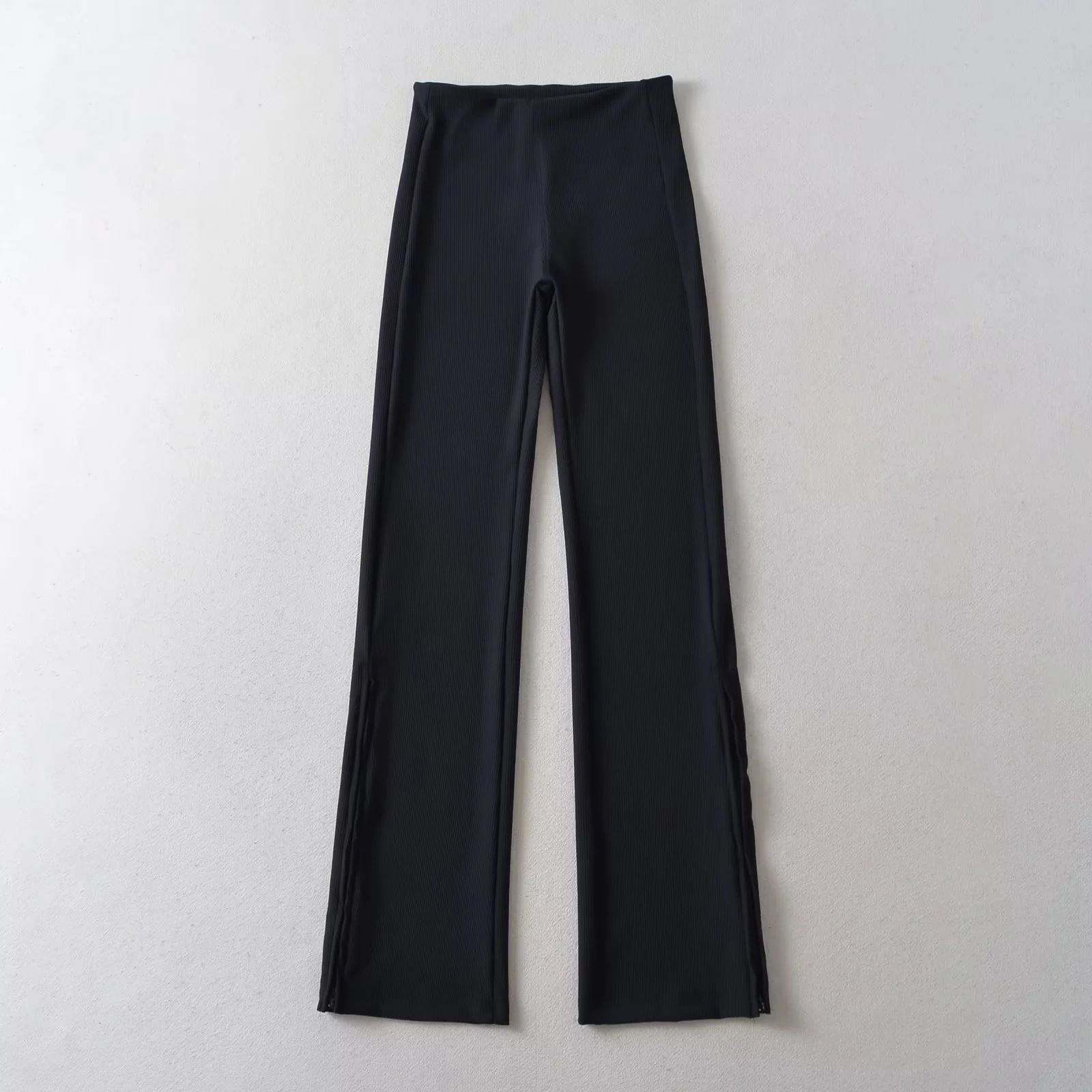 裾に向かって広がるフレアパンツは脚長効果を高め、どんなシーンでも存在感を放ちます。