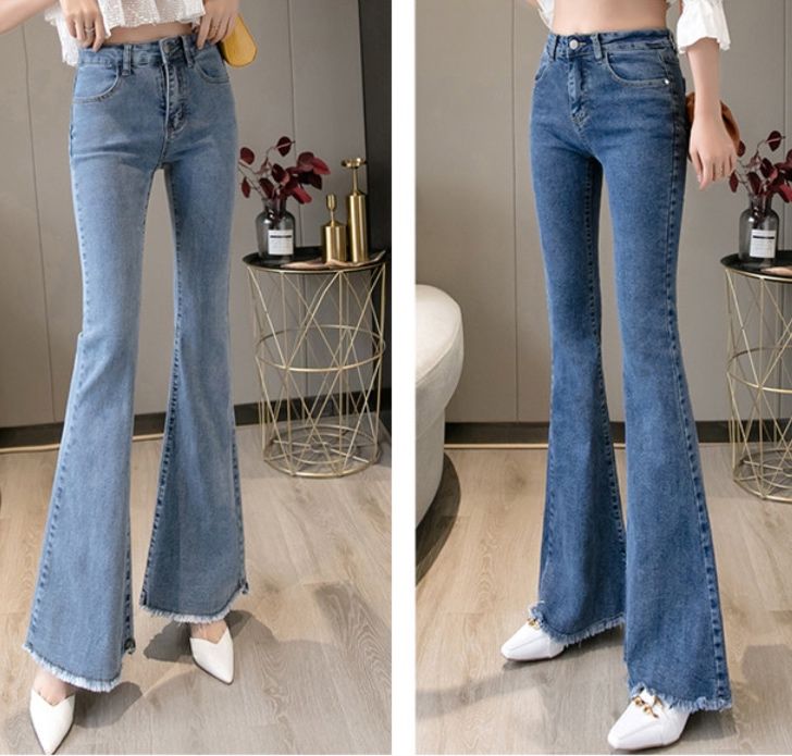 裾に向かって広がるベルボトムデザインで脚長効果が期待できる