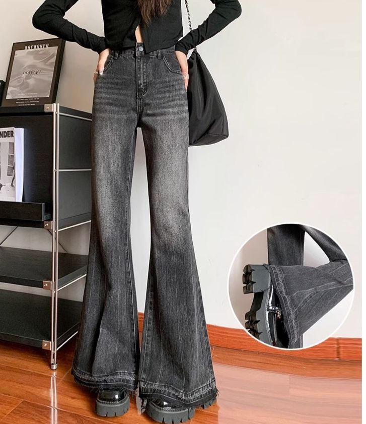 脚長効果抜群のハイウエストデザインが魅力的なフレアパンツです。