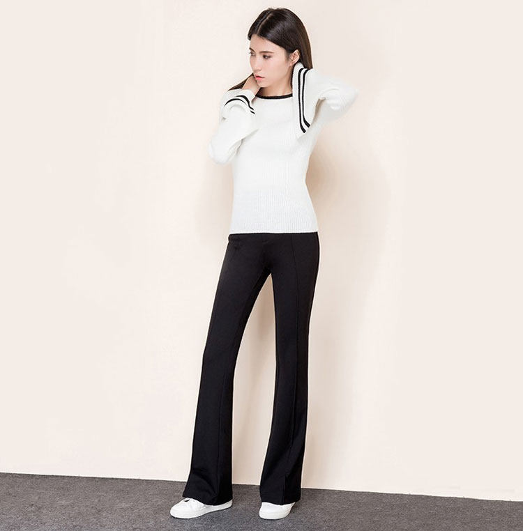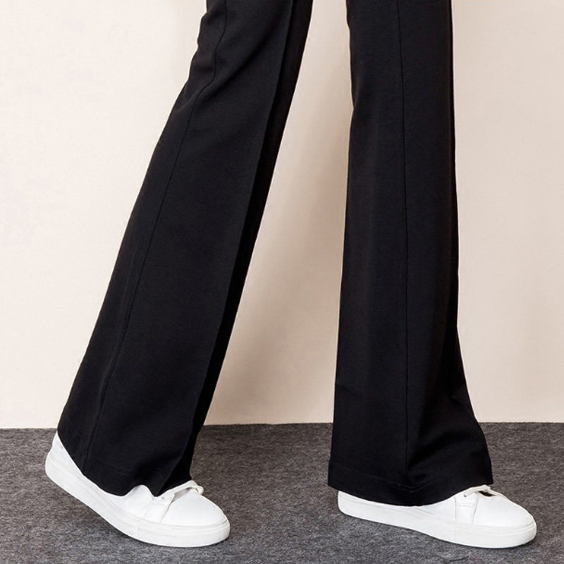 裾に向かって広がるフレアパンツのシルエットが脚を長く美しく見せるスラックスです。