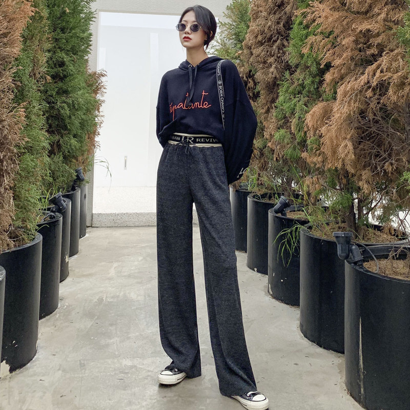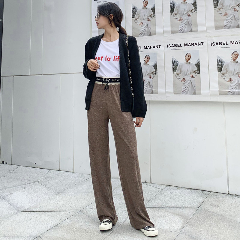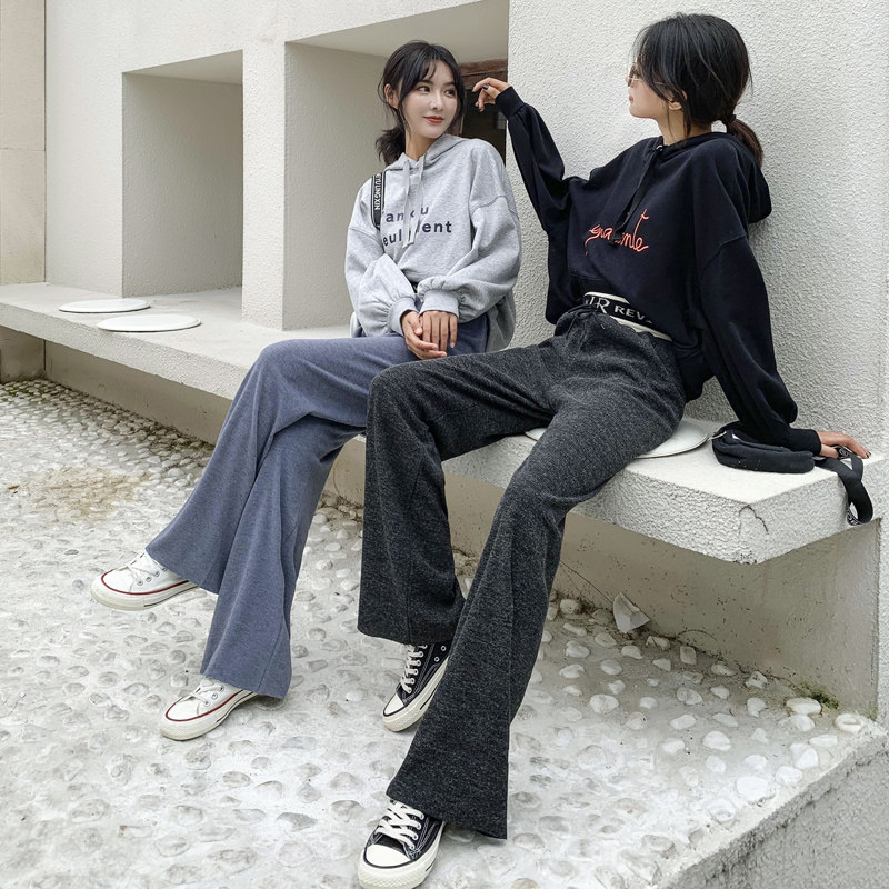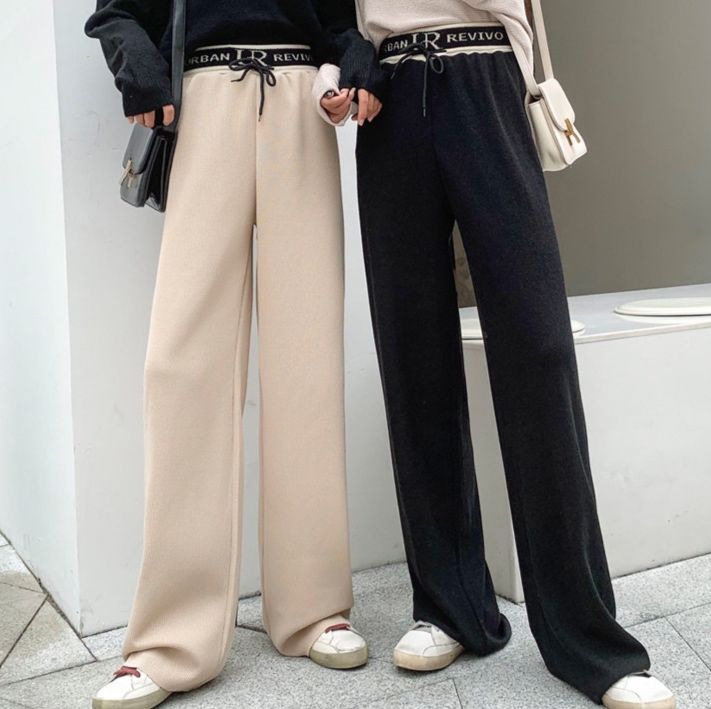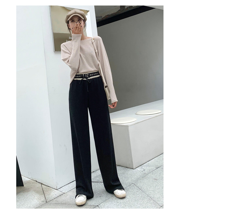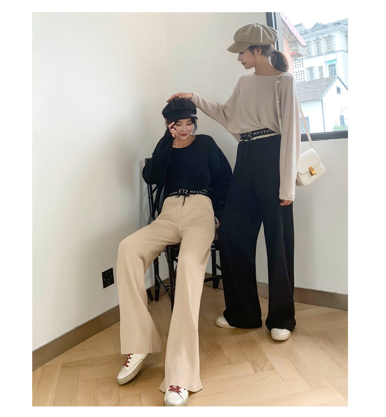 リブ素材のウエストベルトが特徴的なフレアパンツです。