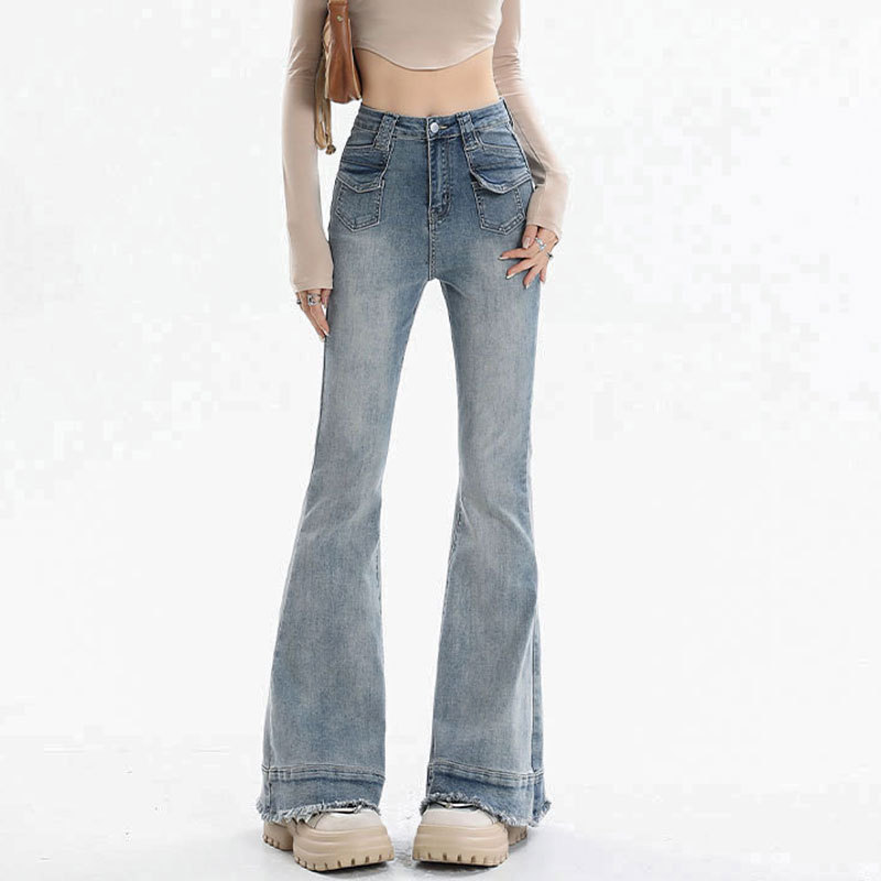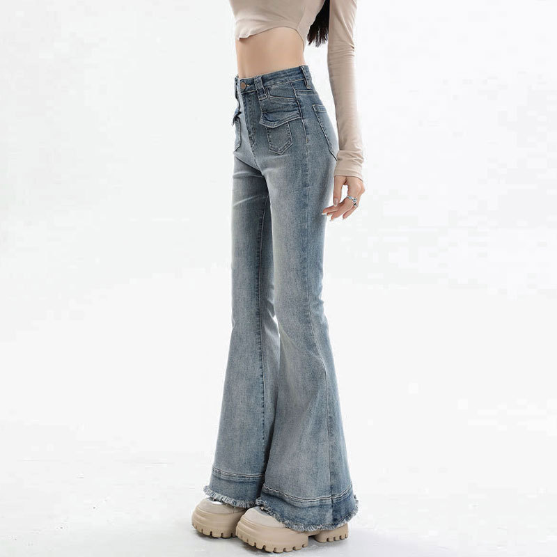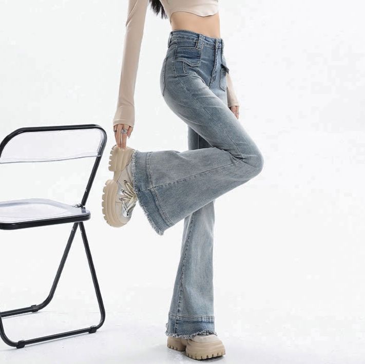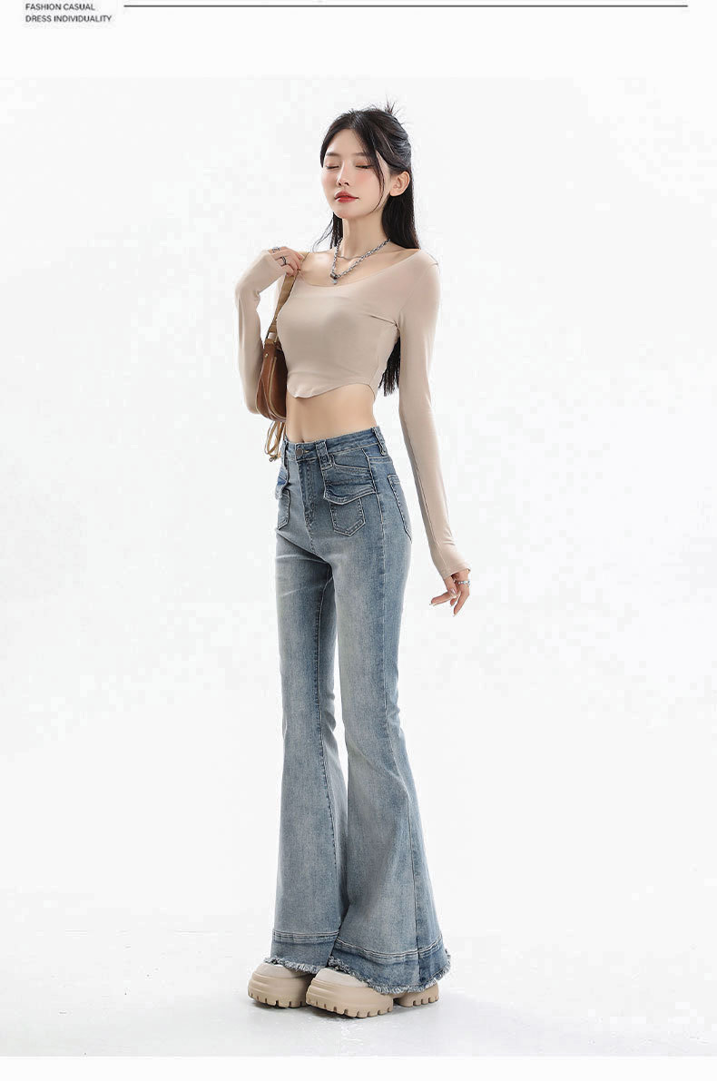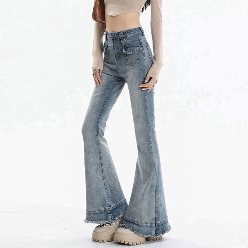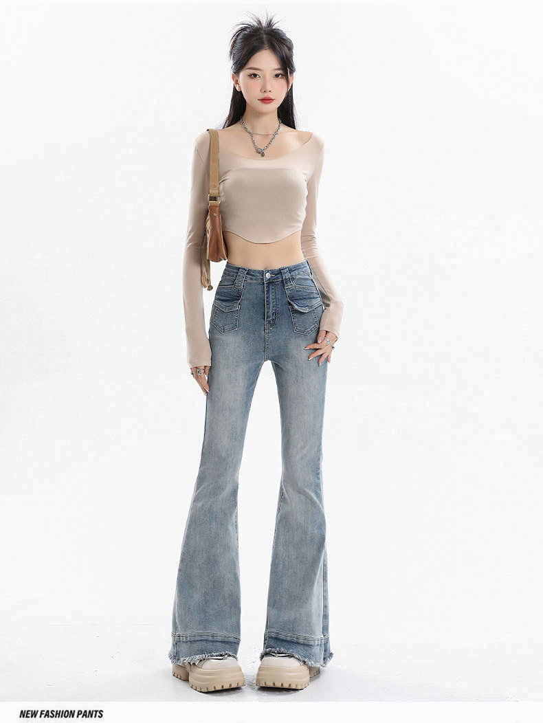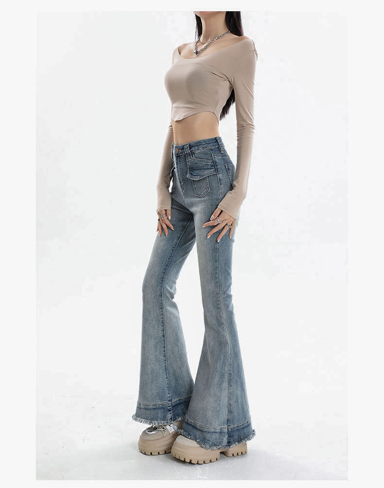 裾部分の程よいダメージ加工とフリンジディテールが、カジュアルでおしゃれな印象を演出