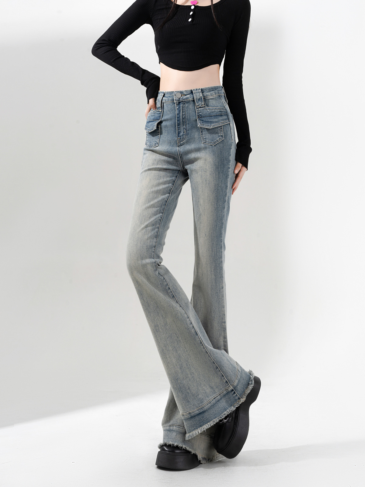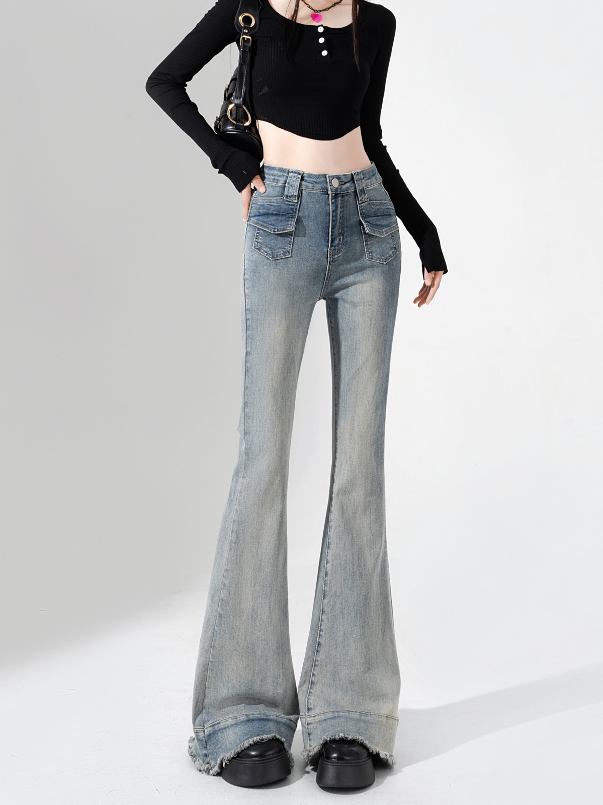裾に施されたフリンジ加工がカジュアルながらもトレンド感をプラスし、スタイリングに個性的な魅力を加えます。