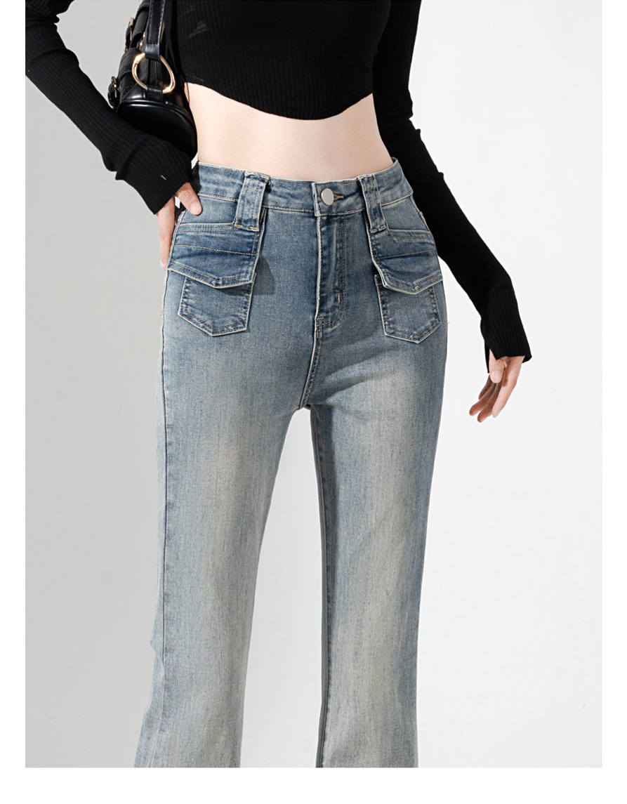自然な色落ち加工が施されたライトブルーの風合いで、こなれ感のあるおしゃれな雰囲気を演出します。