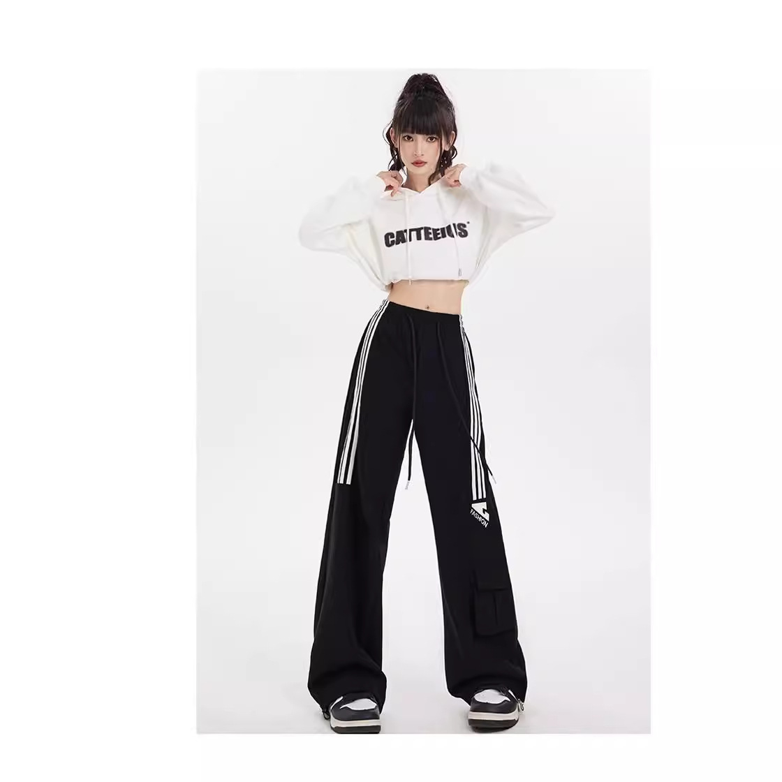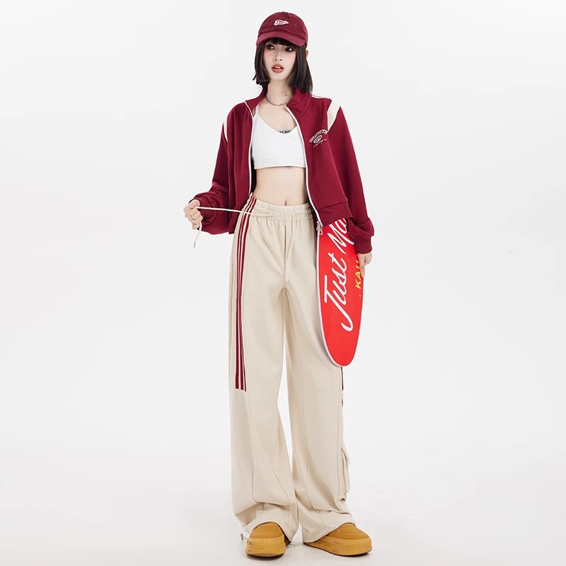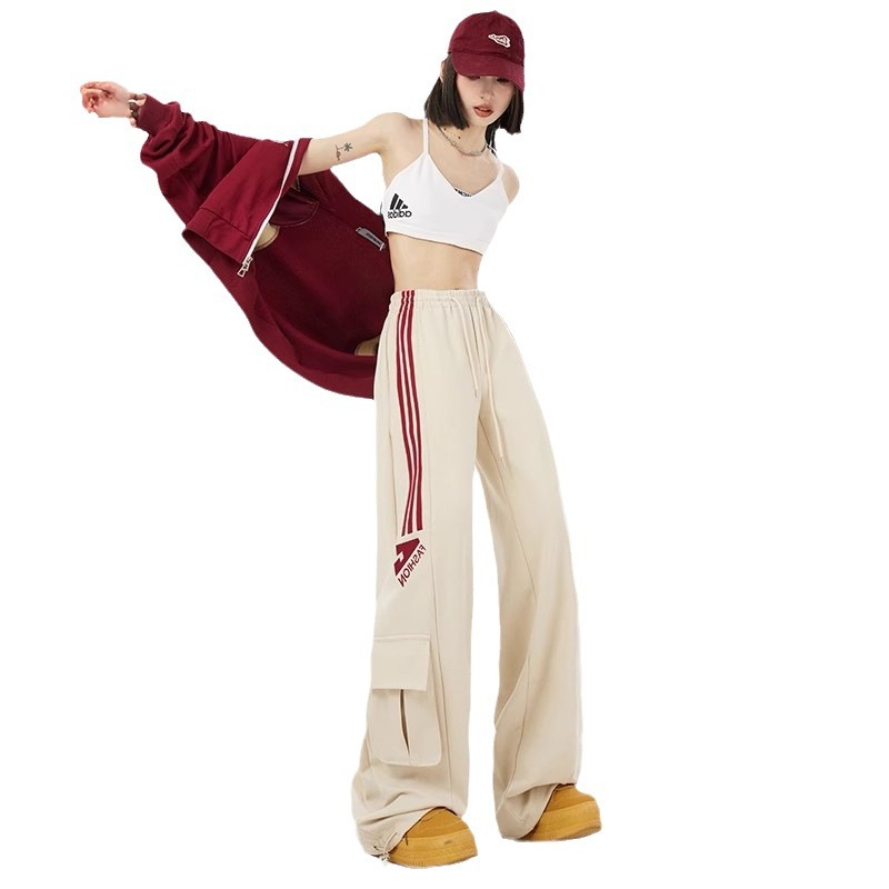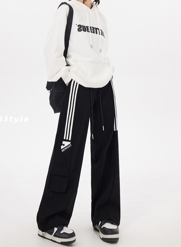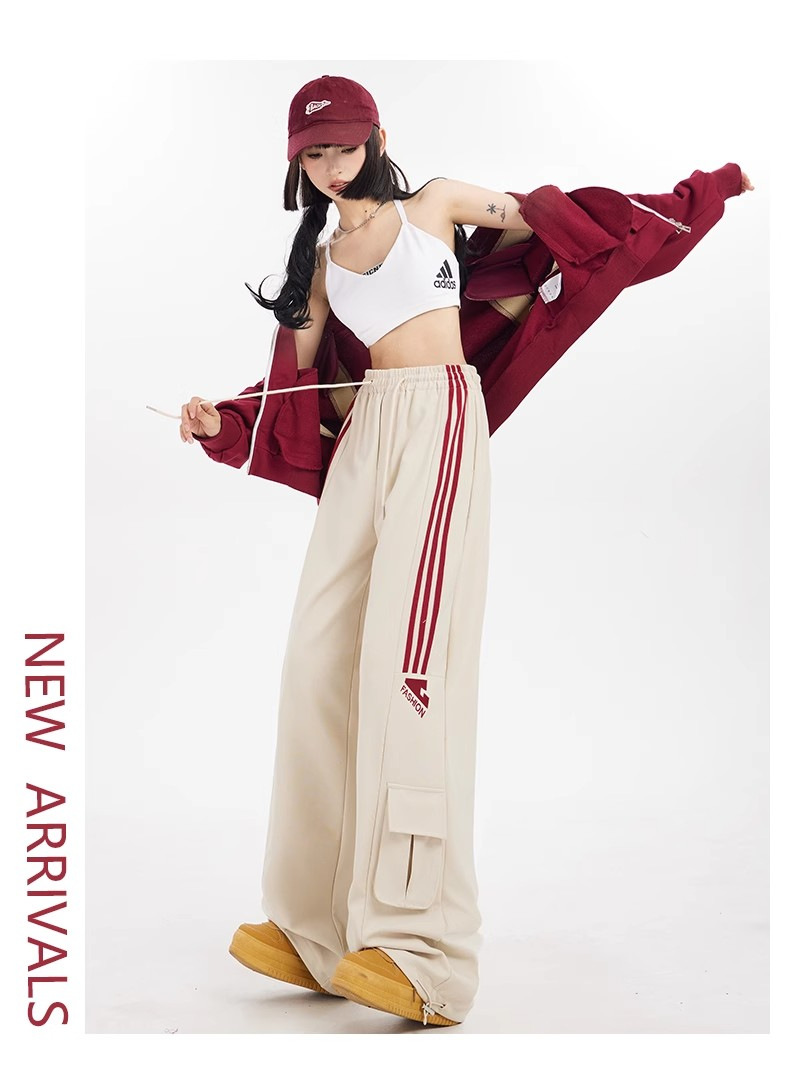 サイドに配された三本ラインがスポーティな印象を演出し、カーゴポケットがアクセントになっています。
