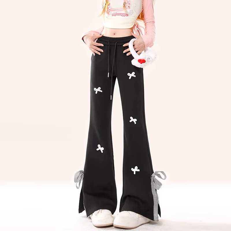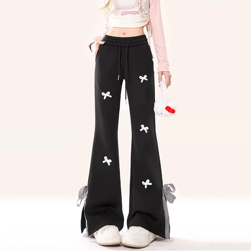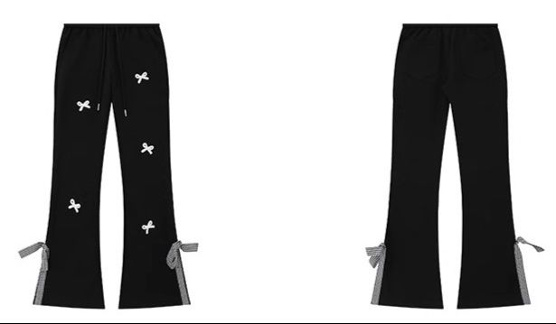 可愛らしいリボンモチーフが散りばめられたフレアパンツです。