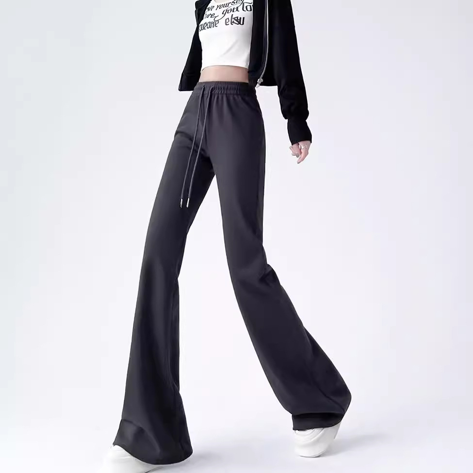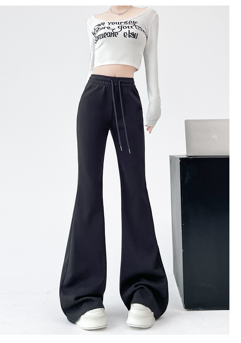 裾に向かって優雅に広がるフレアパンツは脚長効果抜群で美しいシルエットを演出します。