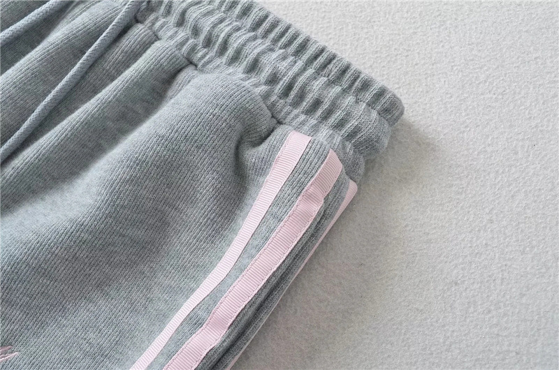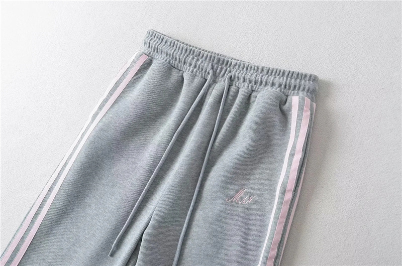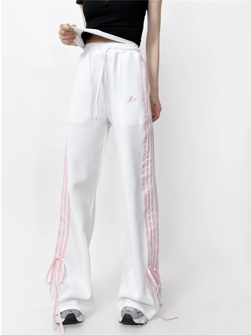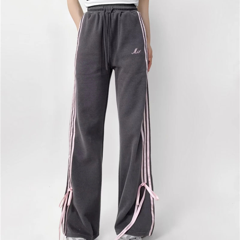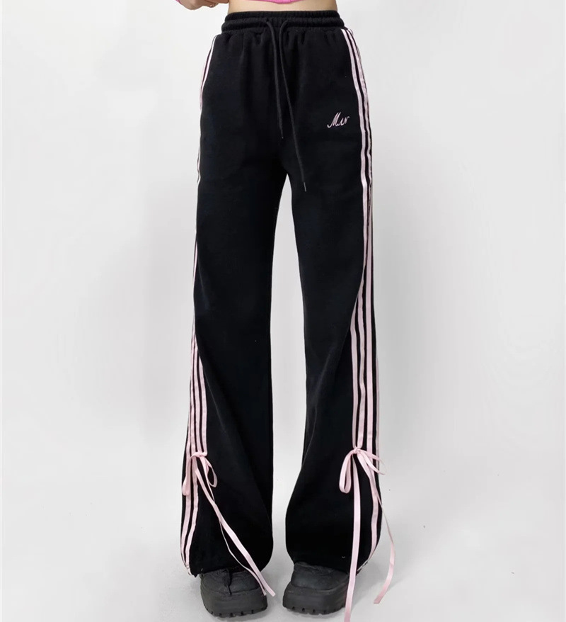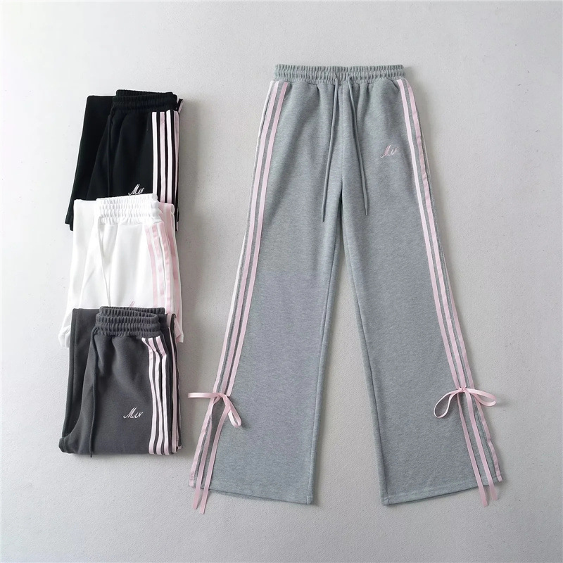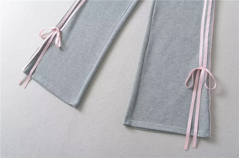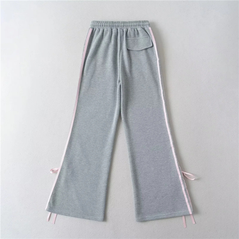 裾部分のピンクのリボンテープが女性らしさをプラスし、普通のスウェットパンツとは一味違う可愛さを演出。