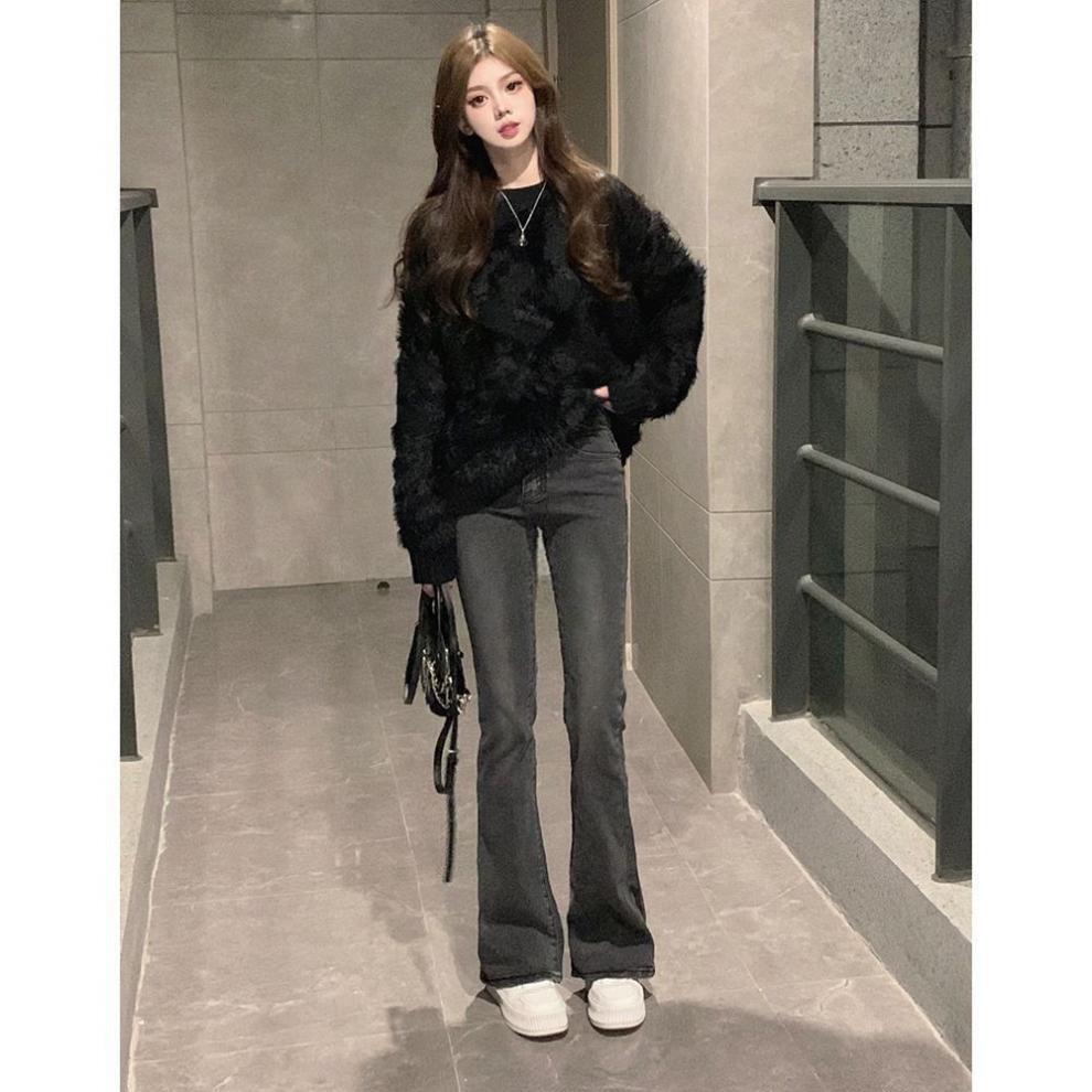 すらりと伸びる美脚シルエットが魅力のフレアパンツです。