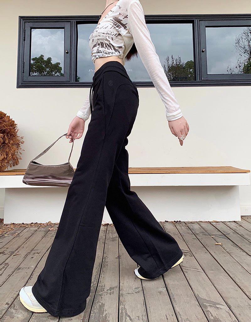 ゆったりとしたワイドなシルエットが縦のラインを強調し、美脚効果とスタイルアップを演出